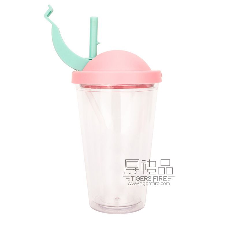 雙層翻蓋吸管冰杯-飲料杯